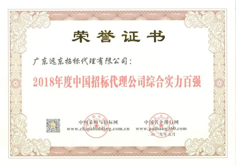 2018年度中國招標(biāo)代理公司綜合實(shí)力百強(qiáng)