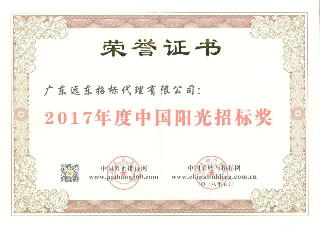 2017年中國陽光招標(biāo)獎(jiǎng)